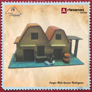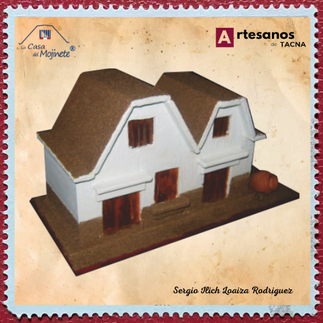 Nuestra historia con las casas de techo de mojinete se inicia en el año 2010, cuando, con el uso del MDF y la mezcla de arena y cola en los techos, dimos origen a la primera generación, como un intento de revivir en pequeña escala la memoria arquitectónica de nuestra tierra. En 2011, con la segunda generación, la solidez del triplay y la aplicación de la arena encolada en techos y suelos nos permitieron acercarnos aún más a la esencia de la tradición, ampliando su simbolismo desde lo alto de las cubiertas hasta la firmeza del suelo. Y fue en 2012 cuando alcanzamos un paso decisivo: la tercera generación, construida sobre cartón prensado, donde la técnica de la arena encolada encontró su consolidación como un arte propio y singular. Desde entonces, cada pieza que elaboramos no es solo una obra artesanal, sino también un acto de memoria y resistencia cultural, que honra el legado de Tacna y lo proyecta hacia el futuro con el mismo espíritu de perseverancia y amor por nuestra identidad.